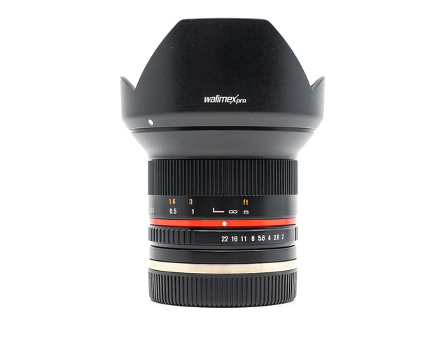 Il Walimex Pro 12mm f/2.0 NCS CS - Sony E Fit è un obiettivo grandangolare a focale fissa progettato specificamente per l'uso con sensori di immagine di formato APS-C. Con una lunghezza focale equivalente a 18 mm nel formato 35 mm e un ampio angolo di campo di 98,9°, questo obiettivo è ideale per immagini di architettura, interni e paesaggi. La sua ampia apertura massima di f/2.0 è ulteriormente vantaggiosa per lavorare in condizioni di scarsa illuminazione.