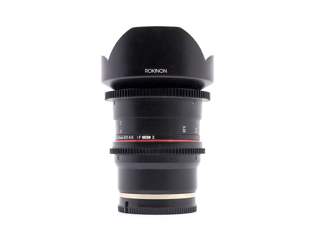 Overcoming the challenges in assembling a set of lenses over time the Rokinon 14mm T3.1 Cine DS Lens for Sony E-Mount covers full-frame sensors and features a multi-layer coating process for consistent colour rendition from lens to lens. It features industry standard geared focus and iris rings that share a common position with other Rokinon Cine DS lenses. This 14mm lens produces a 115.7°, ultra-wide angle-of-view when used with a full-frame sensor. Hybrid aspherical lenses render sharply defined images with a minimum of distortion and chromatic aberrations, and the minimum focus distance is 11" from the lens.
