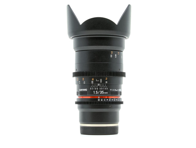the Samyang 35mm T1.5 Cine, E Mount answers the challenge of assembling a set of lenses over time. The lens comes in Sony E-Mount and features industry standard geared focus and iris rings that share common position with other Samyang Cine lenses. To aid focus pullers who have to work both sides of the lens, the aperture and focus scales are marked on both sides of the lens.